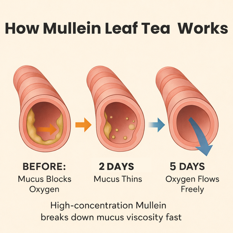 Unlike products that only open airways temporarily, mullein tea works gently over time, supporting your body’s natural clearing process while also soothing the throat and airways as they recover.